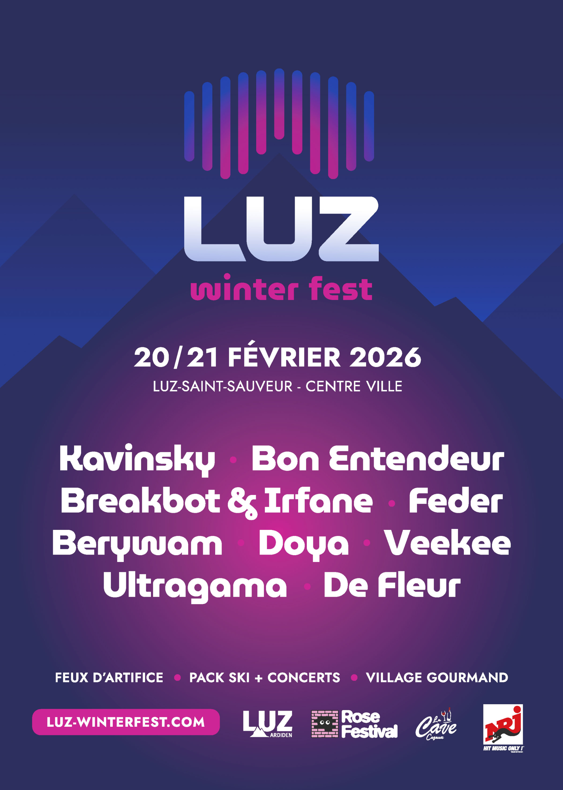 Le Luz Winter Fest débarque les 20 et 21 février 2026 à Luz-Saint-Sauveur pour un week-end où musique, lumière et culture pyrénéenne s’unissent au cœur de l’hiver. Créé par Luz Ardiden avec le Rose Festival et NRJ, l’événement proposera une scénographie lumineuse immersive, un feu d’artifice et un village gourmand célébrant le terroir. Côté scène, une première programmation déjà électrisante sur deux jours : Kavinsky, Breakbot & Irfane, Bon Entendeur, Feder et Berywam, avec encore d’autres artistes à venir. Un nouveau rendez-vous festif et lumineux, prêt à faire vibrer les Pyrénées.
