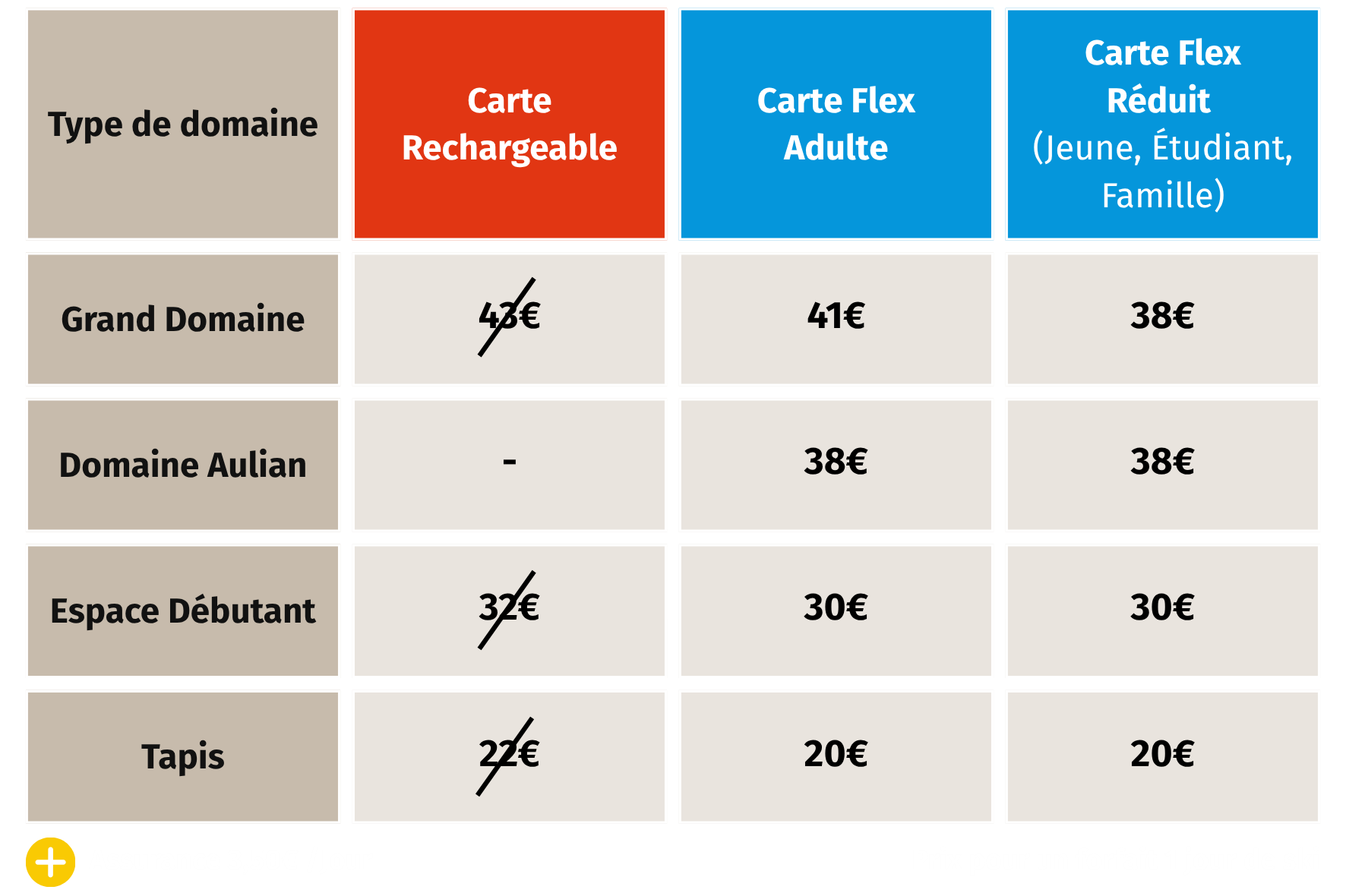 Cette carte, à 2 € seulement pour toute la saison, vous donne accès à des tarifs préférentiels (-2 € sur les prix publics) et vous permet de payer uniquement selon la zone où vous skiez.